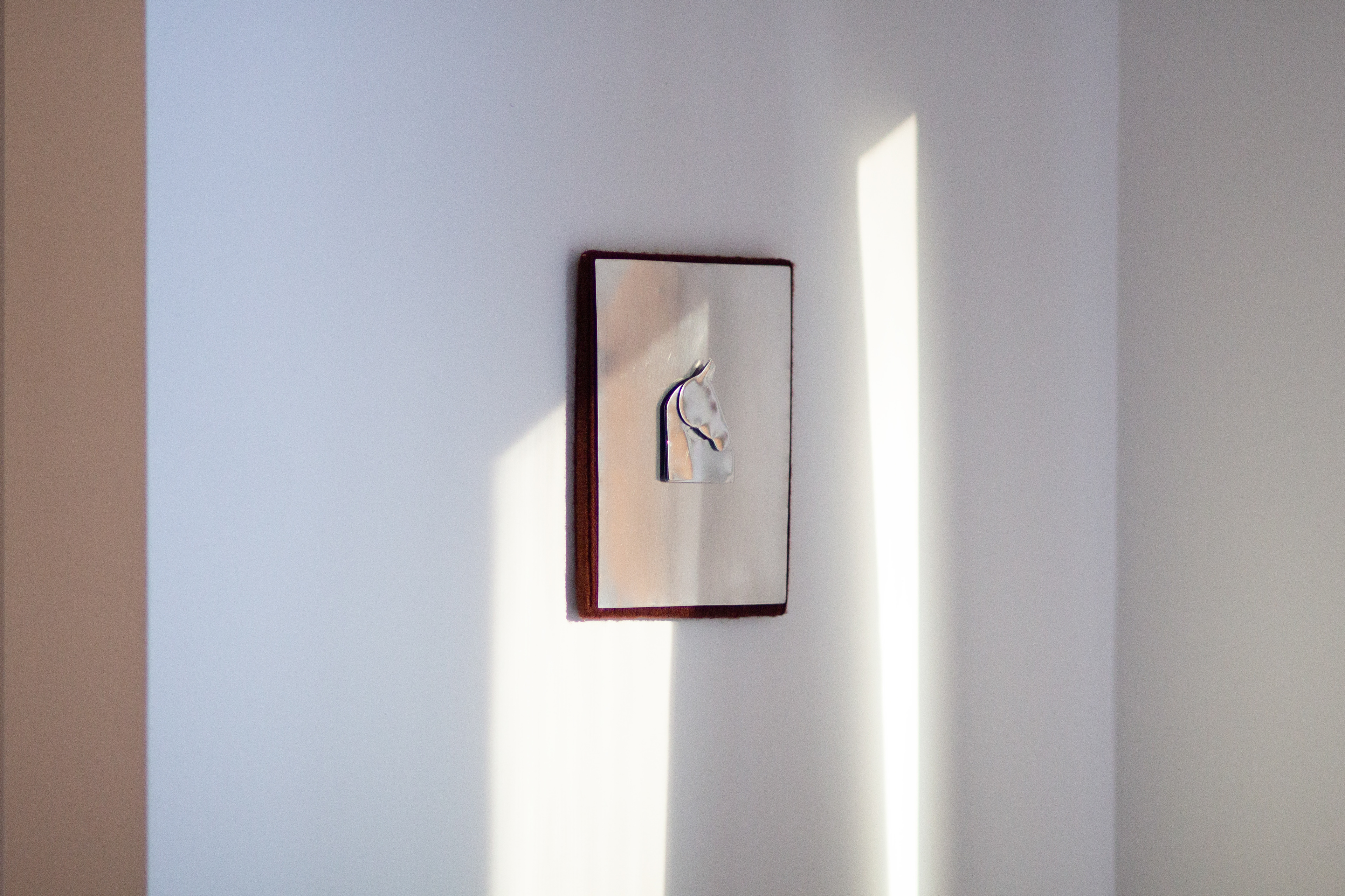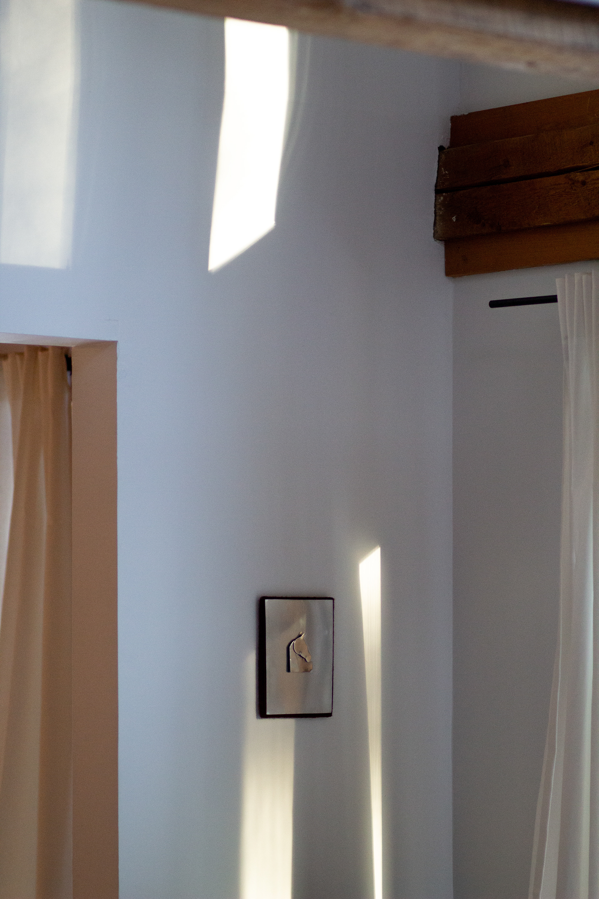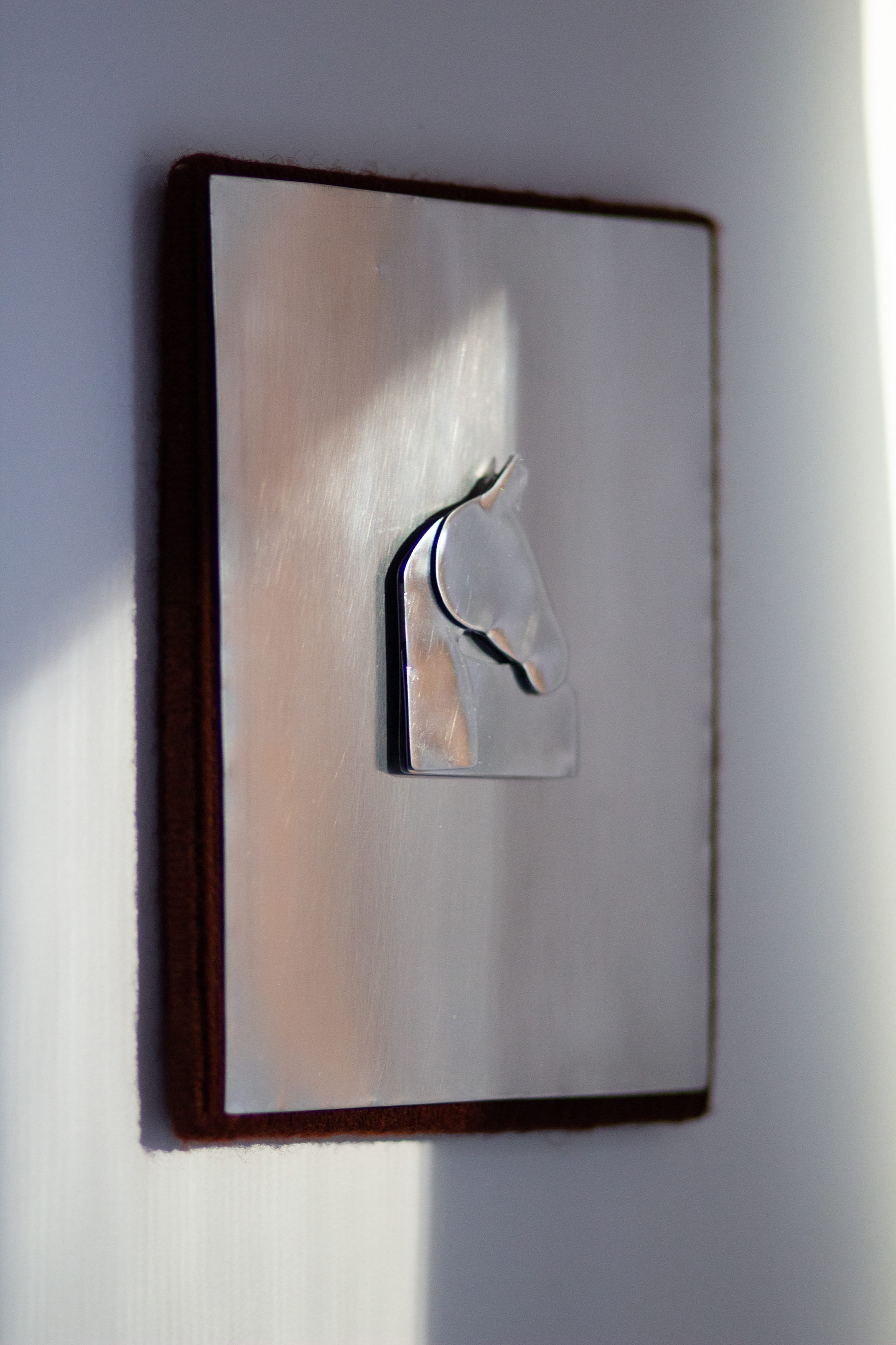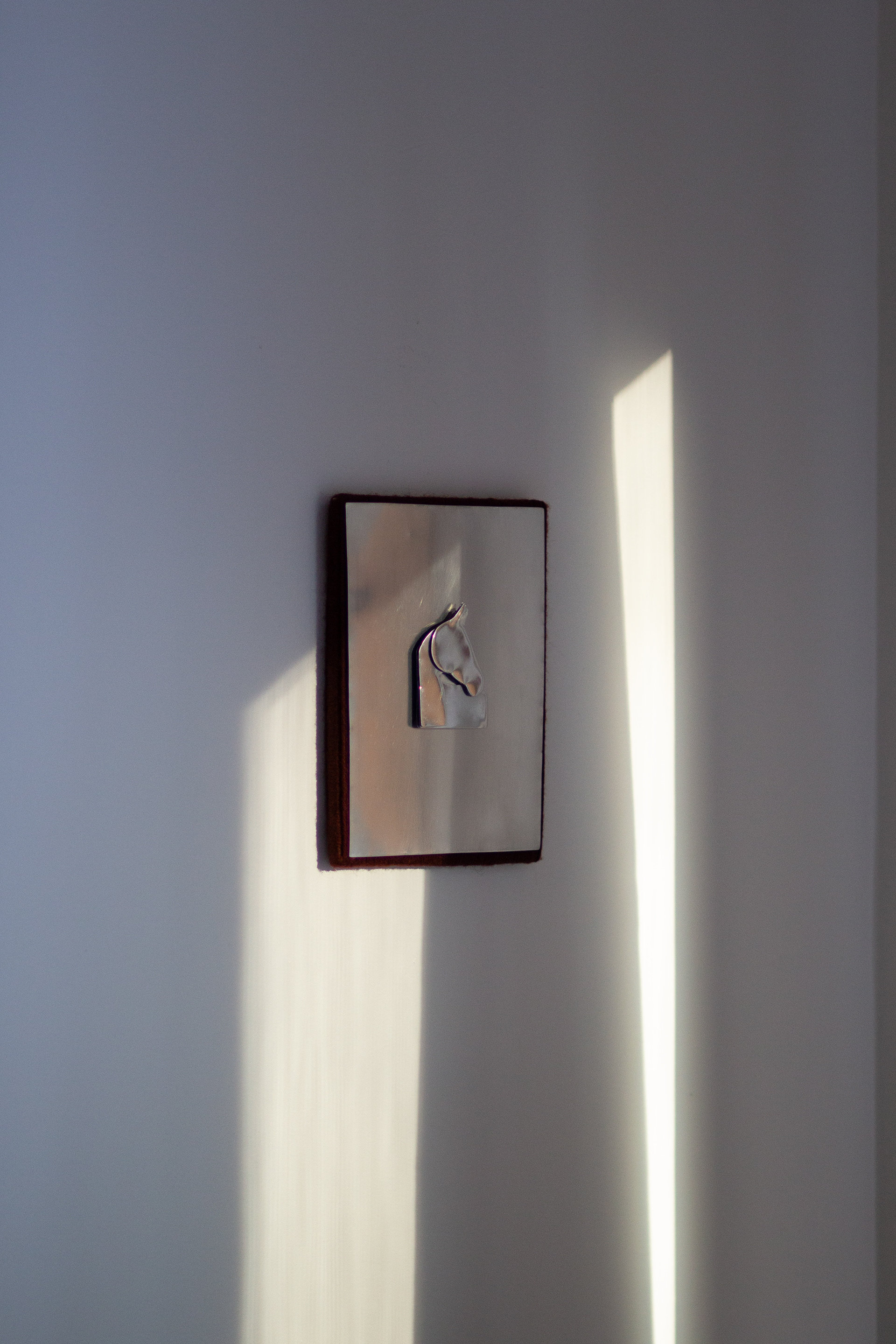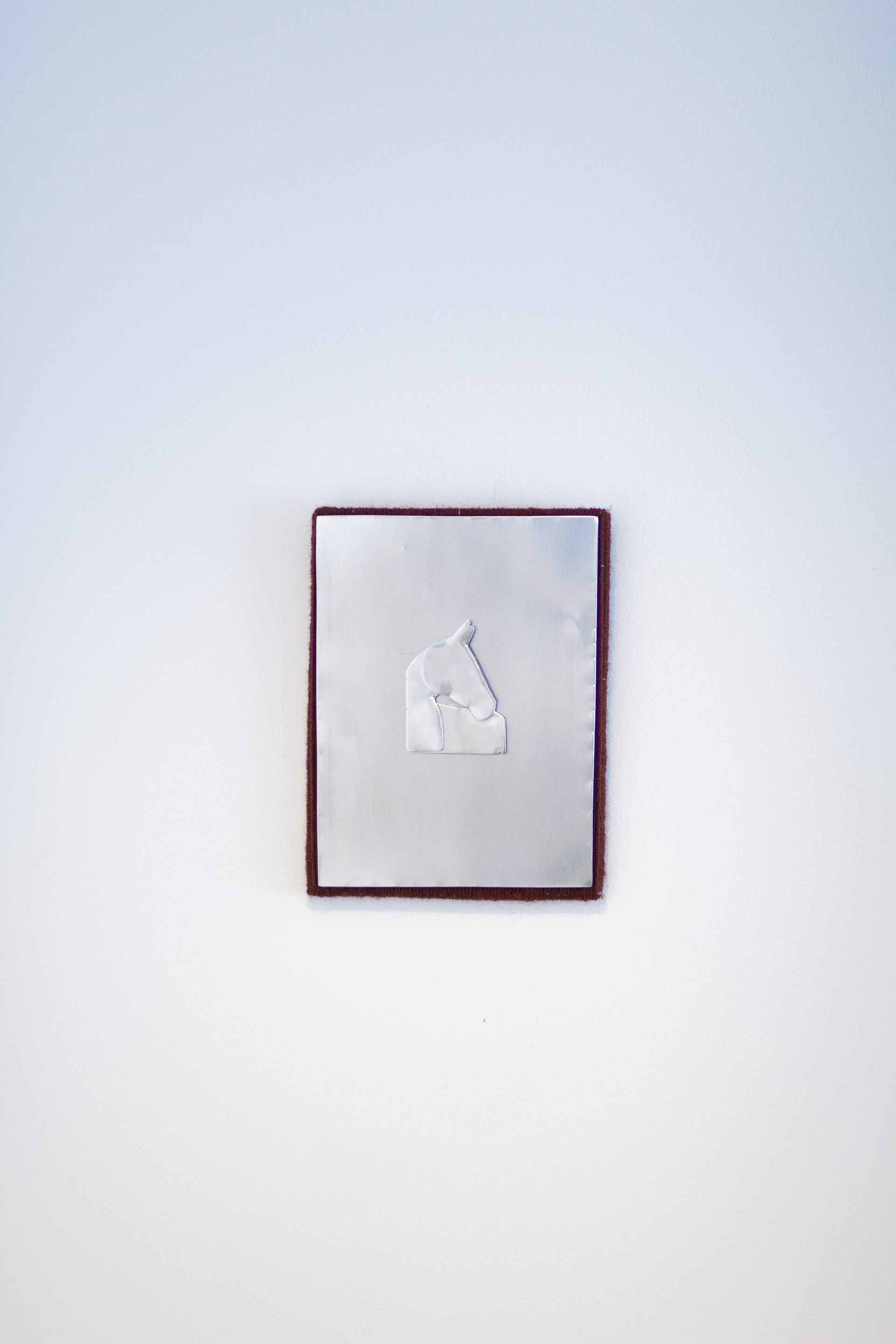 This series assembles works from wooden frames, transformed through staining, wrapping,and layering with wool or recycled cotton yarn. Aluminium horse forms rise in three dimensions, emerging from the surfaces as gestures of presence and movement.
