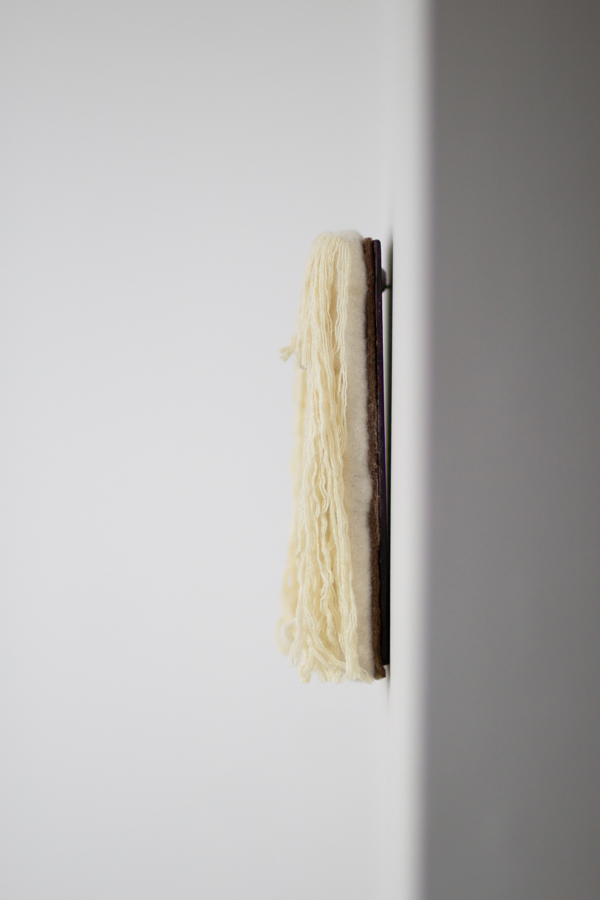 This series assembles works from wooden frames, transformed through staining, wrapping,and layering with wool or recycled cotton yarn. Aluminium horse forms rise in three dimensions, emerging from the surfaces as gestures of presence and movement.